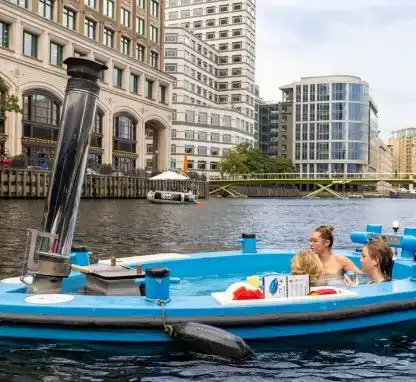 Relax on a Hot Tub Boat cruise from Canary Wharf. Soak in warm bubbles while drifting along the Thames, enjoying skyline views. Perfect for unique celebrations, dates, or unforgettable group adventures.