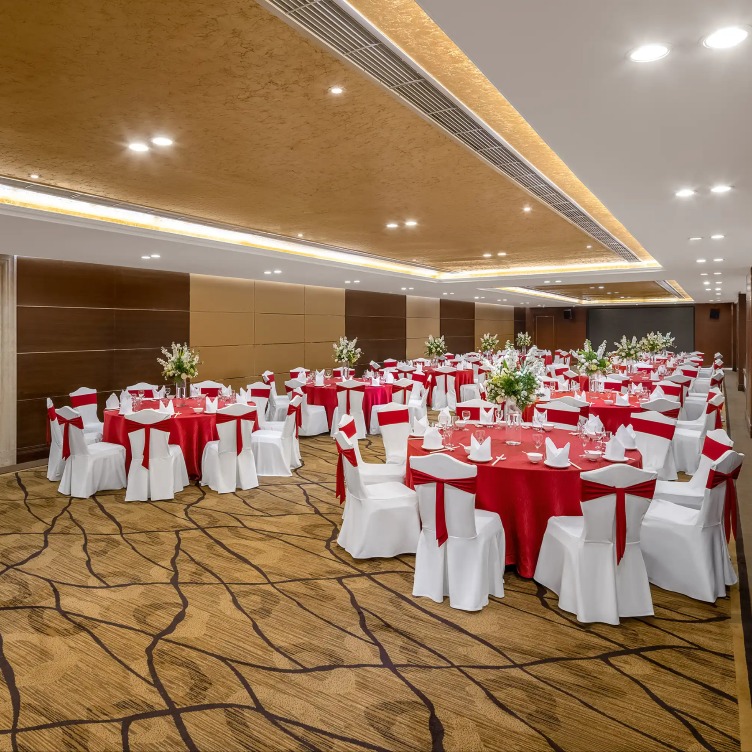 Discover the Grand Ballroom with 734 square meters of pillarless space, eight meeting rooms, a VIP room, and a bridal room, all equipped with cutting-edge facilities.