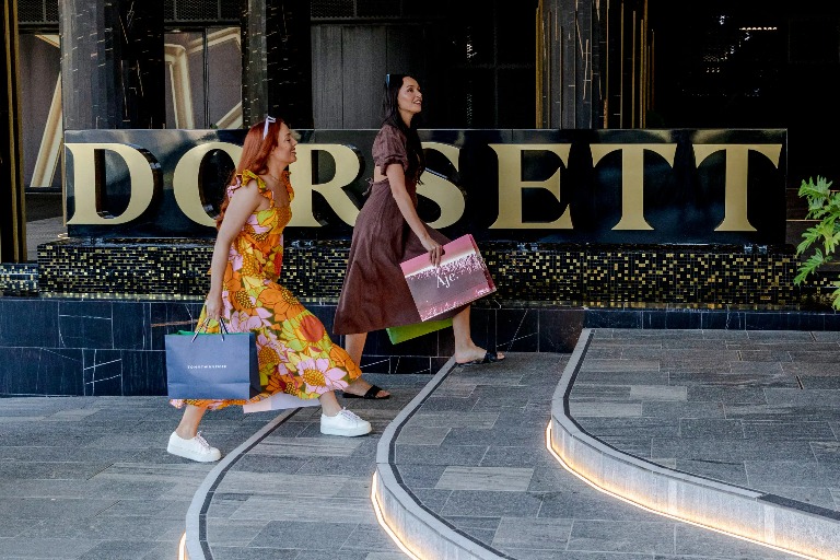 • Two women entering the Dorsett Gold Coast Hotel.