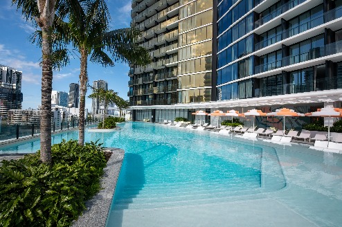 • Sunbeds by the outdoor pool at Dorsett Gold Coast