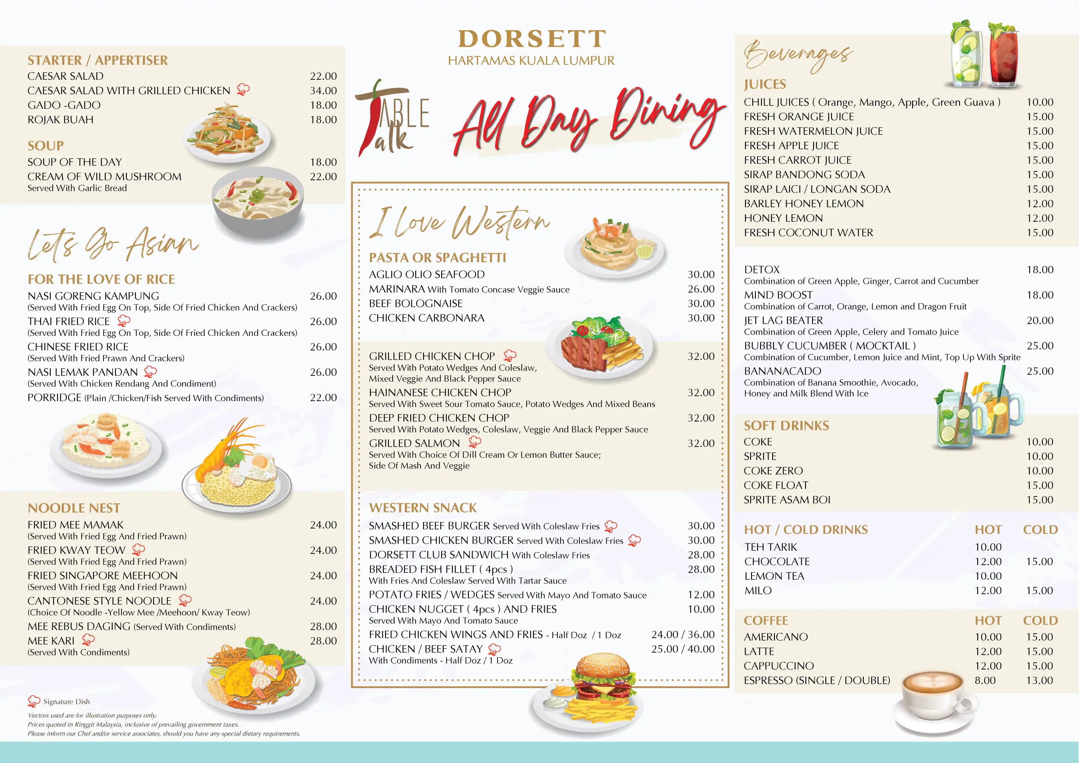 Bring your friends, family or romantic partner to try a variety of international cuisines, exciting local Malaysian dishes as well as our chef’s signature dishes.