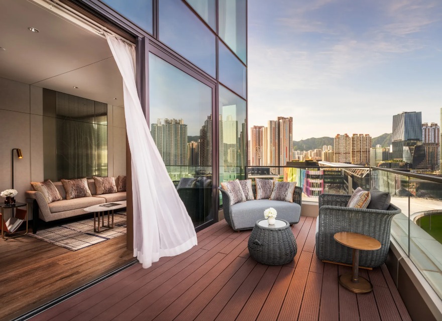 • Seating area in the balcony in a Dorsett Kai Tak Hotel Room.