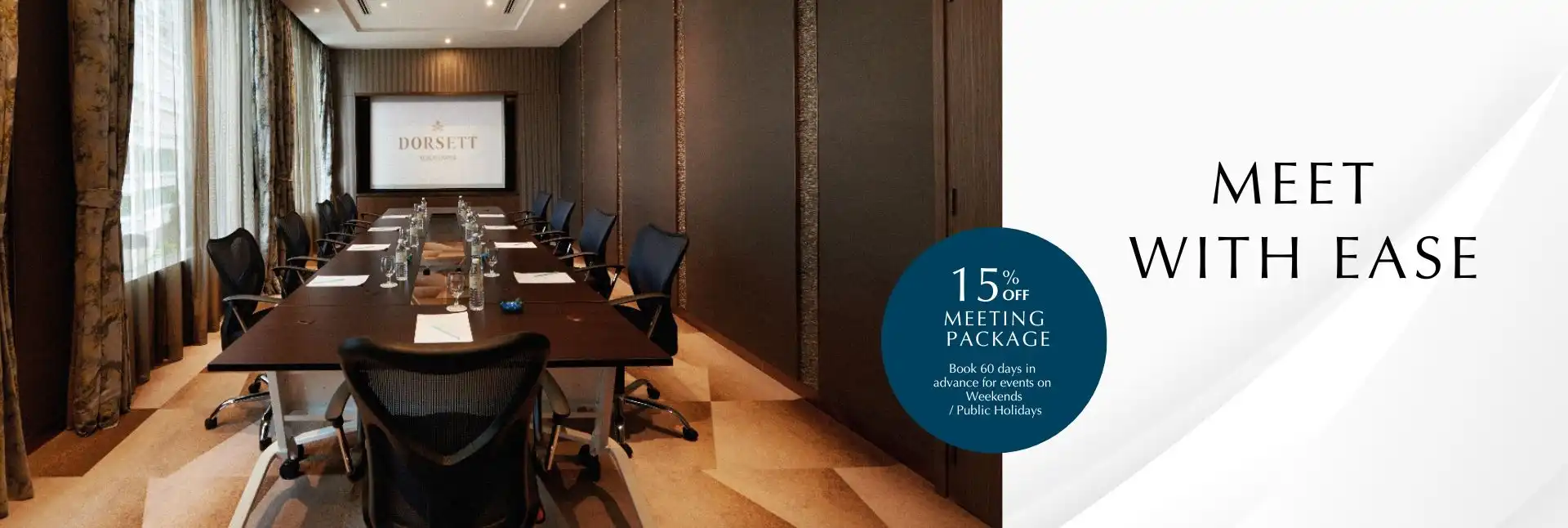 Host your next event with confidence with our Meet with Ease package. Designed to enhance productivity, our well-equipped spaces offer the perfect environment for corporate gatherings, training sessions, and strategic discussions. From seamless arrangements to professional service, we ensure a smooth and efficient experience, so you can focus on what truly matters—making an impact.