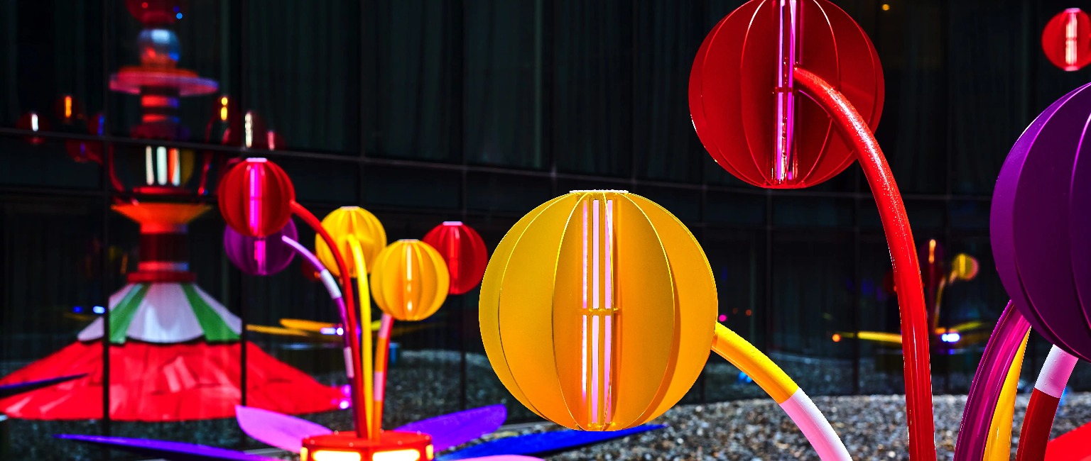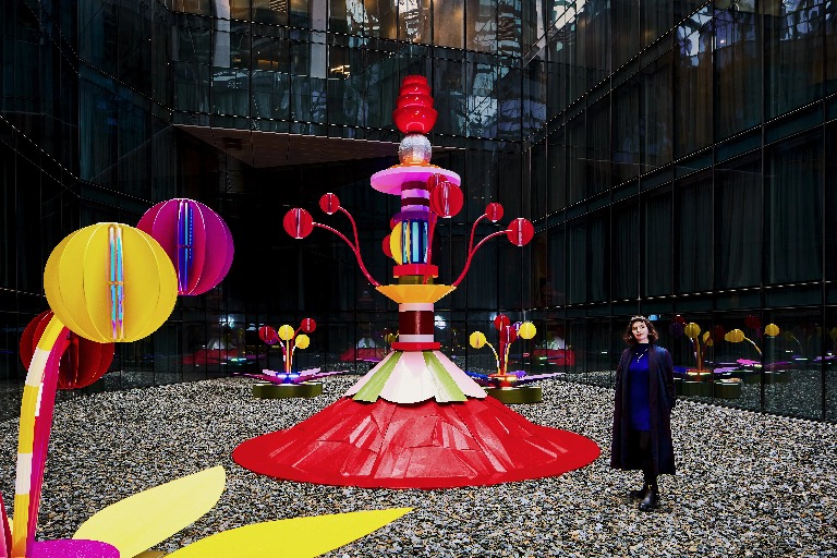 The scale and beauty of this blooming work by Architect/Artist Marta Figueiredo, with lighting scheme by lighting designer Edward Linacre. Marta Figueiredo is an Australian-Portuguese architect and multidisciplinary artist based in Naarm/Melbourne. Her work is playful and challenges ideas about design, architecture, standardisation, and inclusion. It prompts discussions about ways design can be a broader sensory experience.