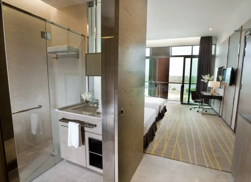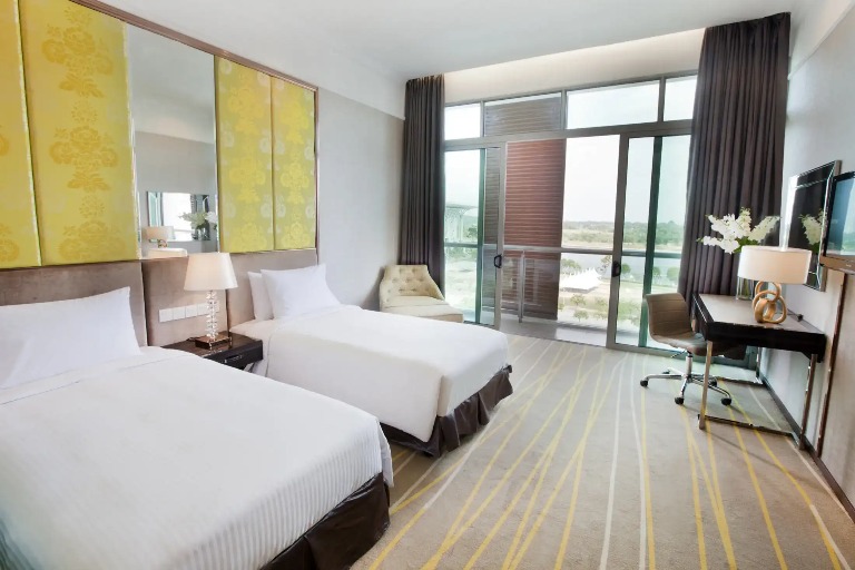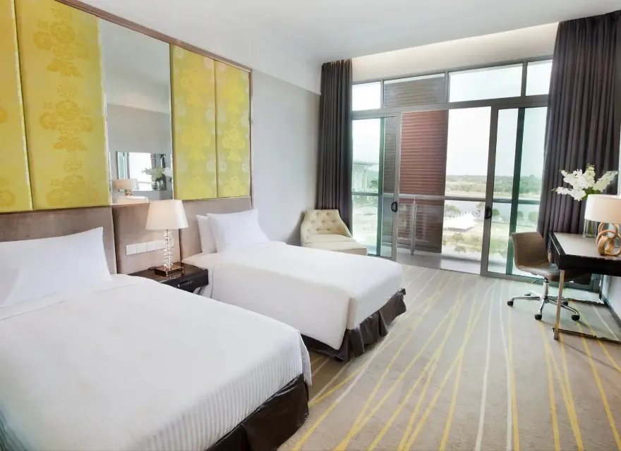 As a well-appointed 4-star hotel in Putrajaya, travellers may opt to chill out in the comfort of their rooms in the Deluxe Balcony Room. With 33m² of living space, the rooms are stylishly chic in design complete with walk-in shower and individual balconies, allowing one to soak in the natural beauty of the lake, throughout the day or a night.