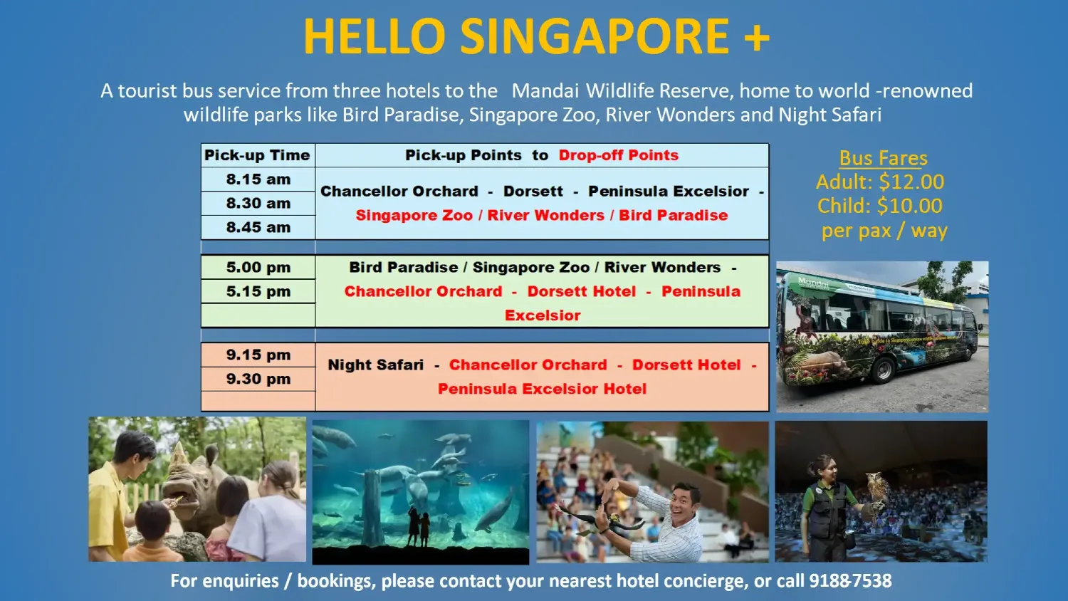 Bus fares: $12 (adults) / S$10 (child) per pax per way