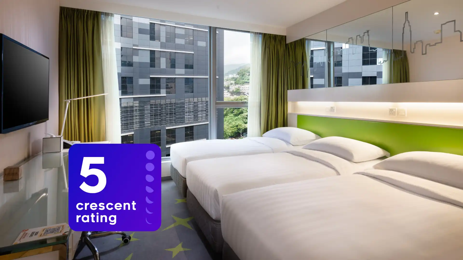 Premier Room with corner window, facing to the beautiful green lush mountain view of Tai Mo Shan; Spacious and refreshing green furnishings including air purifier, offers you a warm and comfortable stay.