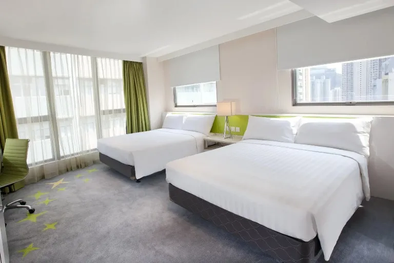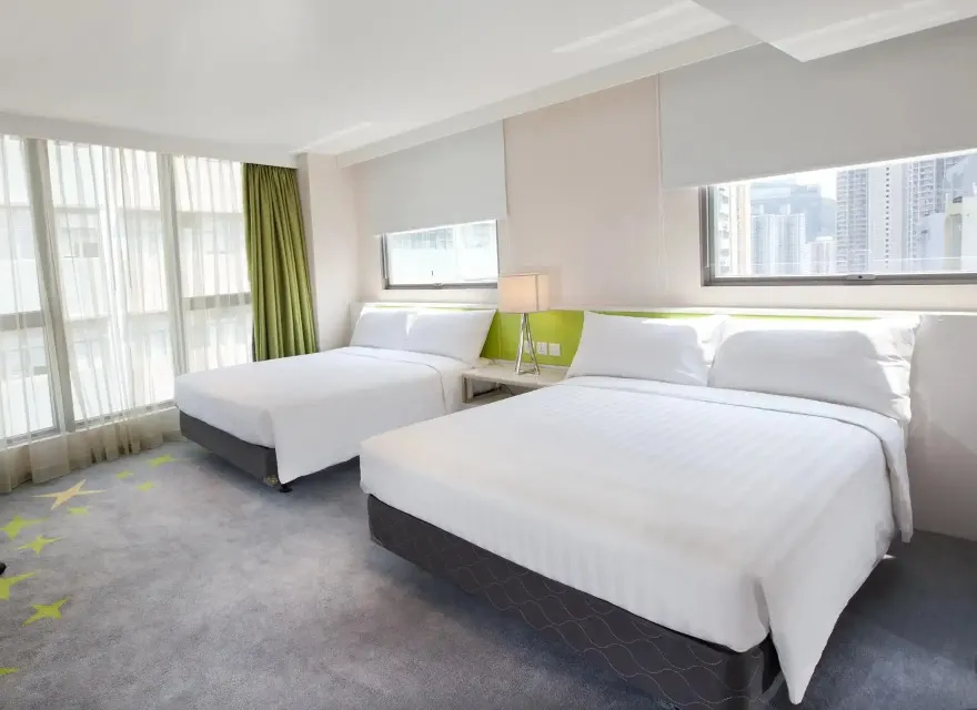 Providing a comfortable and affordable accommodation for all kinds of travellers including groups of friends & families, Deluxe Triple Room would be your ideal choice. Spacious and cozy, fittings in soft green and white overtones with a floor-to-ceiling window. The room features 3 single beds & amenities of 3 with free Wi-Fi and air purifier. Deluxe Triple Room & Deluxe Plus Room with a door in between which can be changed as Interconnecting Rooms, accommodate maximum of 5.