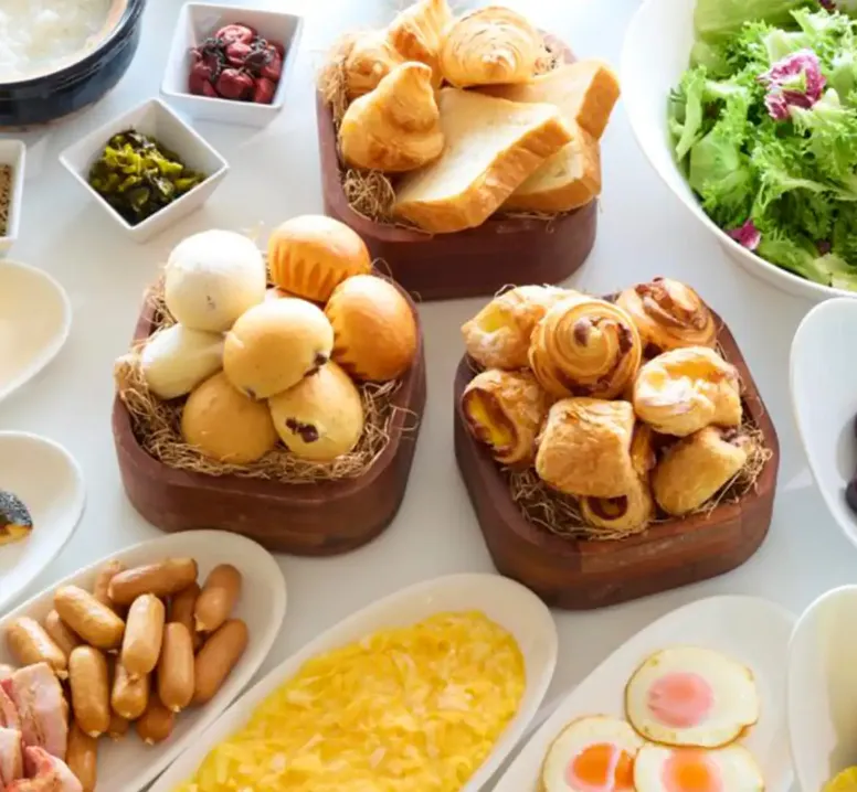 目玉焼き / ボイルエッグ / ソーセージ / 白身魚フライ / シューストリングポテト / 出汁巻き玉子 / スクランブルエッグ / ハム /
