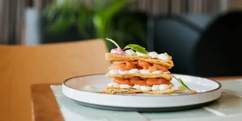 Prefer something savoury? The Smoked Salmon Mille–Feuille will scratch your brekky itch – think layered puff pastry with cream cheese capers, spanish onion, and indulgent salmon caviar.