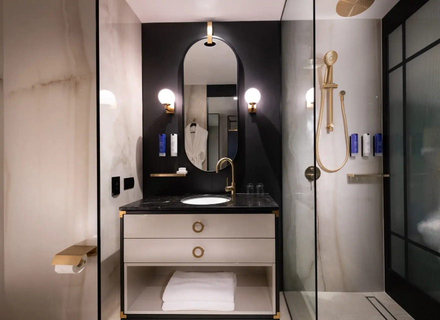 客房还提供现代化设施,如大屏幕智能电视、高速WiFi以及ELEMIS SmartCare的可持续浴室产品。