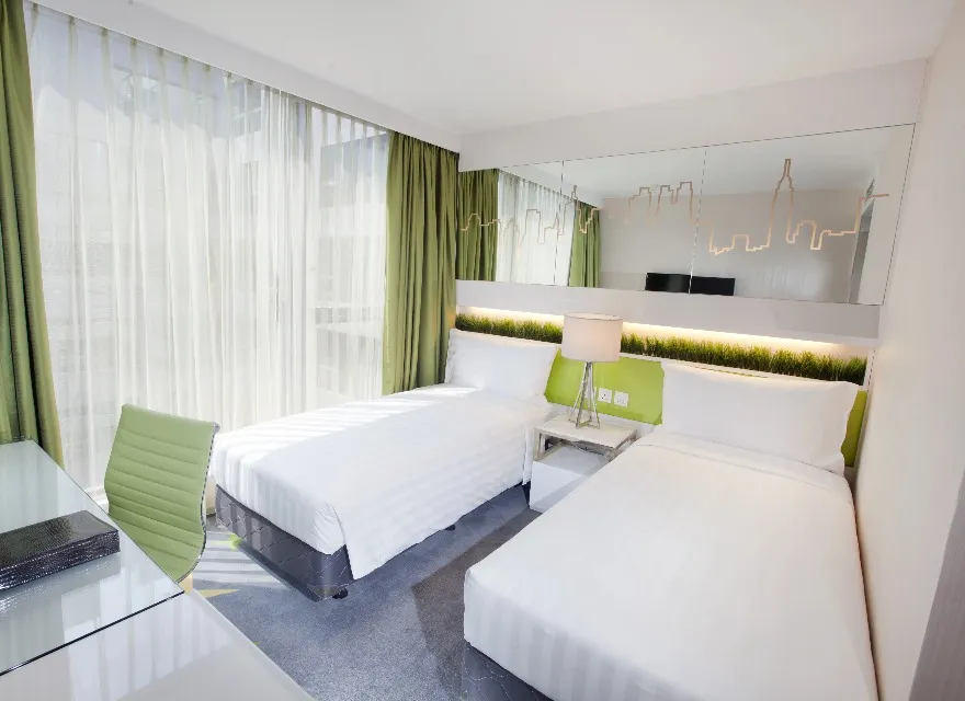 高级客房以清新的绿色及白色作为主要色调,房内备有空气净化机,而玻璃窗让阳光可渗入客房每一个角落,并提供完善的现代化设施让你和伴侣享受舒适休闲的住宿体验。