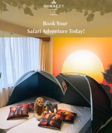 步入梳邦帝盛君豪酒店的野生動物園客房,體驗充滿活力的叢林氛圍和獅子、犀牛、長頸鹿和猴子等友好動物的野生家庭冒險。