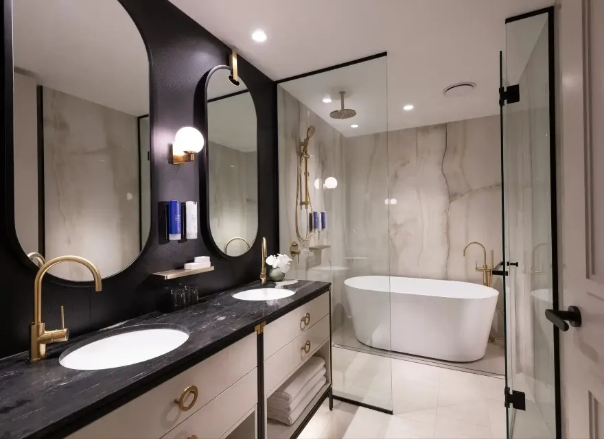 享受現代化設施,包括大型平板電視、免費高速WiFi、帶Elemis洗髮護髮和護膚產品的獨立浴缸,全天候免費進入我們的行政酒廊和酒店設施,包括恆溫室內游泳池、健身房、桑拿、蒸汽房和健康空間。