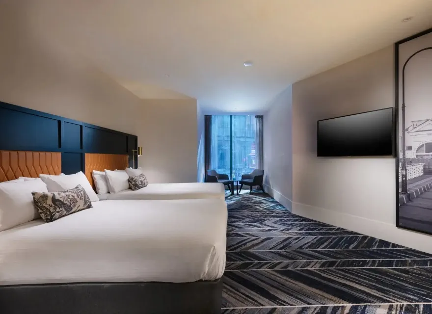 墨爾本帝盛酒店的Diva Garden套房為家庭或朋友團體提供舒適而時尚的住宿體驗。
