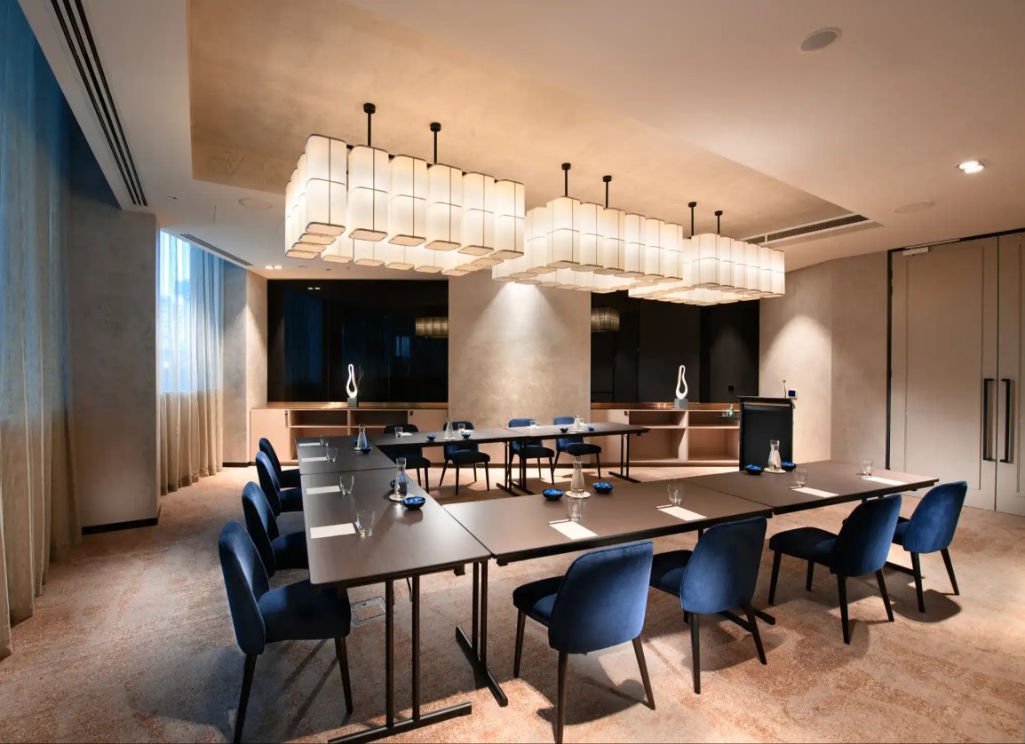 我們可以根據您的活動需求定制座位安排、視聽設置和餐飲設施,從U型桌面佈置到更長的排列形式或獨立桌位佈置。這個高級空間配備了觸摸屏技術和高速Wi-Fi,確保您的會議順利進行。