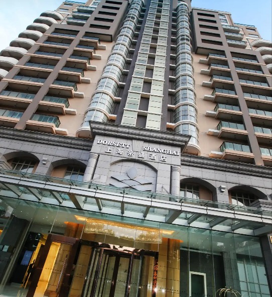 • Exterior of Dorsett Shanghai Hotel during the day.
