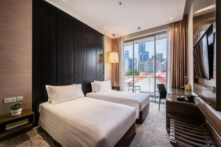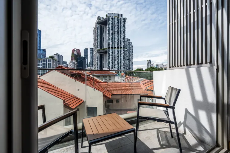 沉浸於我們新加坡陽台房間的寧靜魅力。我們的陽台房間(城市景觀)提供一個私人陽台,俯瞰歷史悠久的店屋和現代城市風光,讓您放鬆身心,感受充滿活力的氛圍。