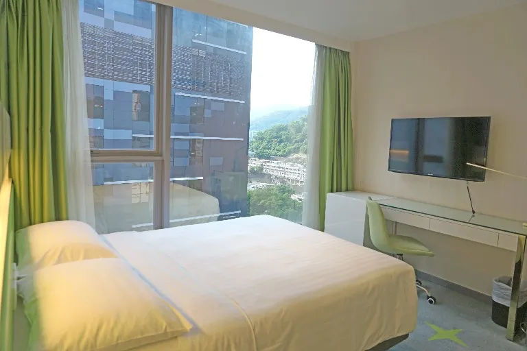 寬敞的升級版豪華客房設計時尚,可遠眺部分山景翠綠景緻,房內提供衣櫃及完善配套設施包括空氣淨化機,配有雅潔清新的綠色家具,及落地玻璃窗,讓你可擁有難忘的住宿回憶。