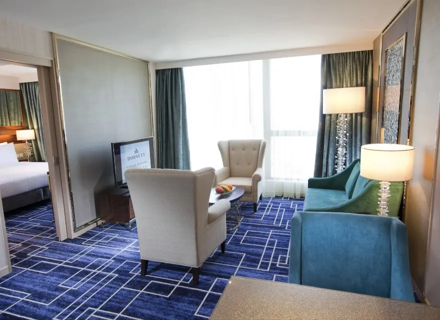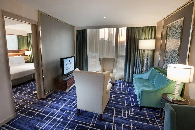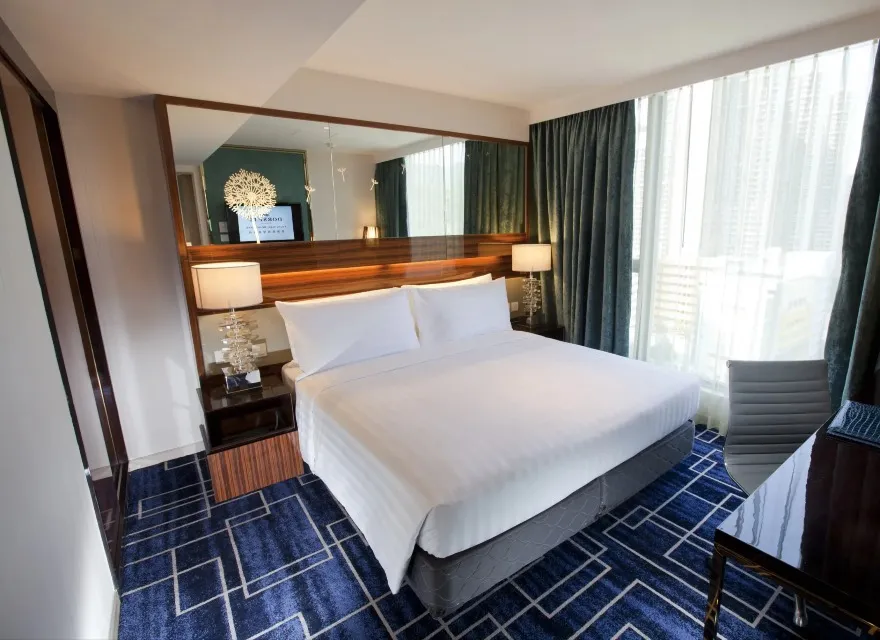 我們的尊貴套房位於酒店高層,設計時尚優雅。套房設有一張特大雙人床、寬敞的套房式浴室、空氣淨化機及免費Wi-Fi 。寬敞的尊貴套房可遠眺部分山景翠綠景緻,獨立客廳備有舒適的沙發床和扶手椅,為家庭或朋友組合提供一個理想且舒適的住宿環境。