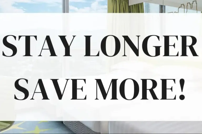 立即預訂住宿越長,節省越多。如果你連續入住4晚或以上即可享高達92折優惠,你不但可以更實惠的價錢享受優質住宿,更可享用我們為你提供的貼心服務和舒適的住宿環境。