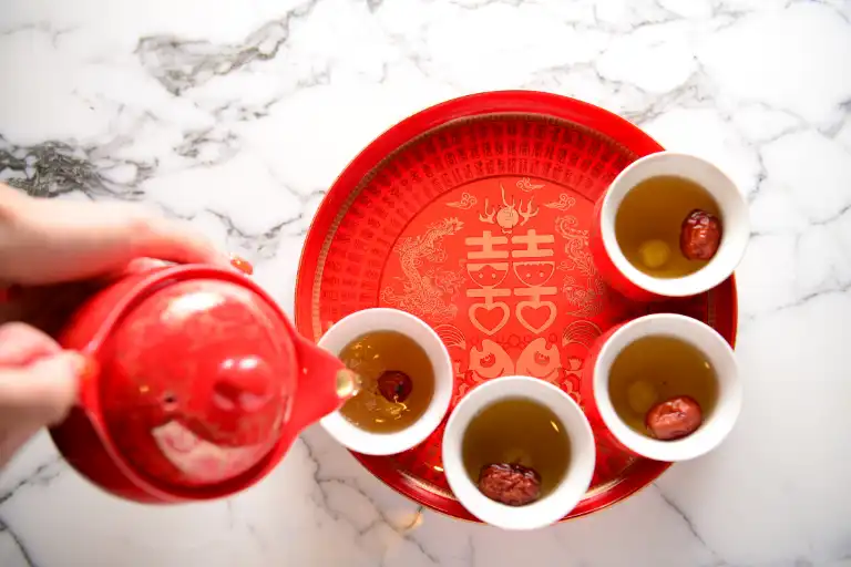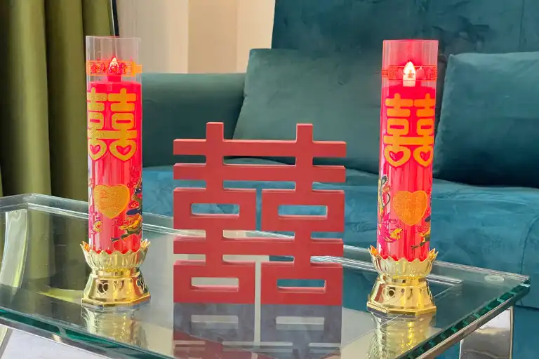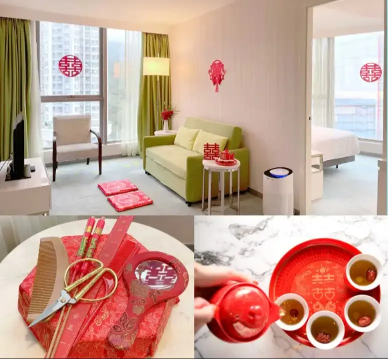 - 免費使用敬茶套裝包括茶壺1個及茶杯4隻、敬茶跪墊1對、LED 電子龍鳳燭一對、附設全身鏡及蒸汽熨斗1部(按需求提供)