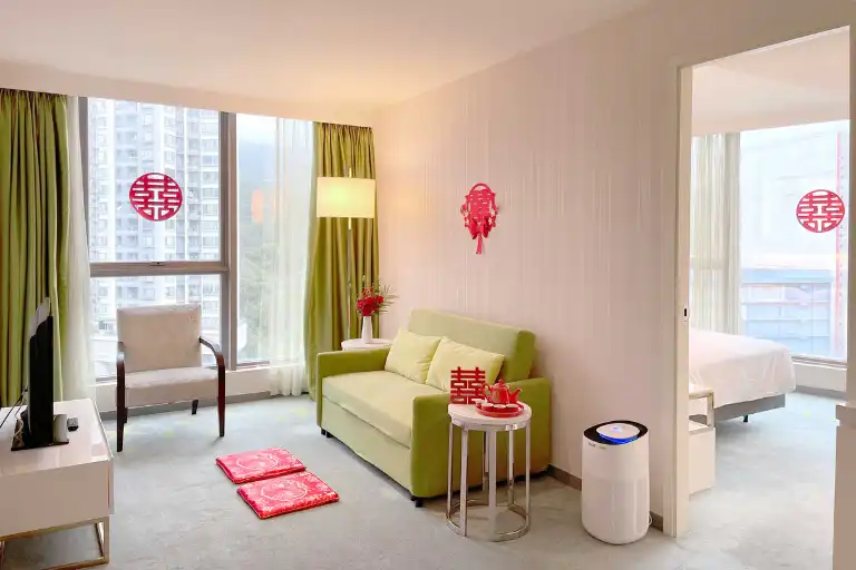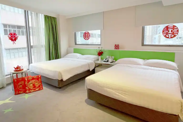 立即預訂寬敞舒適的四人客房/套房連獨立客廳,是婚嫁出門的不二之選!落地大玻璃設計,增添房間通透感,更附設結婚出門各種用品,為您們締造難忘回憶。