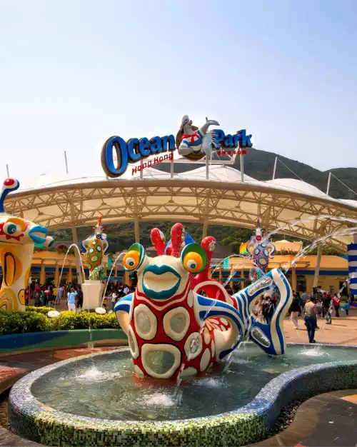 位於香港島南面的香港海洋公園,於1977年開幕,是一個世界級的海洋動物主題樂園,集娛樂、教育及保育於一體。公園佔地超過91.5萬平方公尺,分別有「海濱樂園」及「高峰樂園」兩個景區,由架空纜車及海洋列車連接。