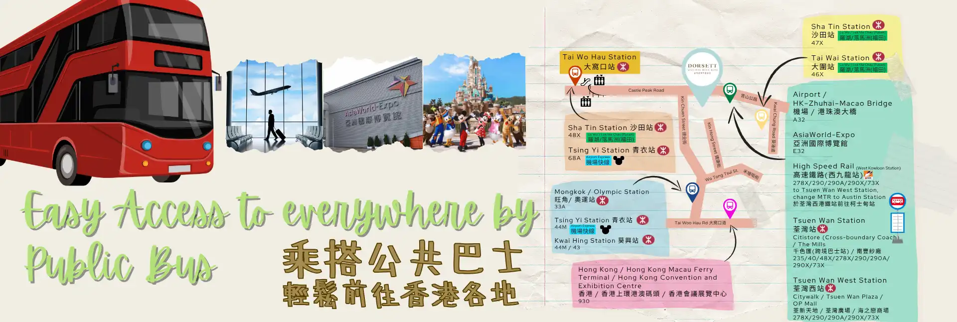 你亦可輕鬆前往香港迪士尼樂園。酒店同時亦鄰近不同著名荃灣觀光景點,包括擁有長達200年歷史經翻新的古老圍村 -- 三棟屋博物館和不同寺廟建築群。