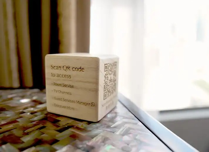 酒店全面採用可生物降解的木製二維碼展示方塊。只需掃描二維碼,您就可以輕鬆獲取所有您需要的重要酒店信息。